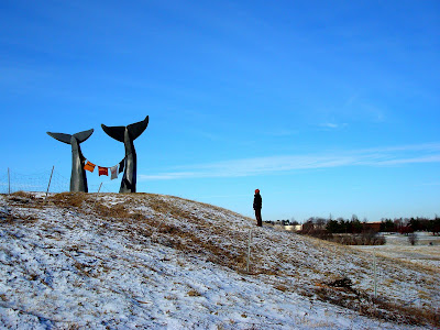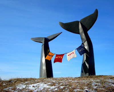 now, not that we think that this sculpture is in any way, shape or form, a "sterile or cold public place"...we LOVE this sculpture by Vermont artist extraordinaire, Jim Sardonis, and thought it would be the perfect place for some prayer flags! this sits on interstate N89 as you come into Burlington...a landmark around here for sure....